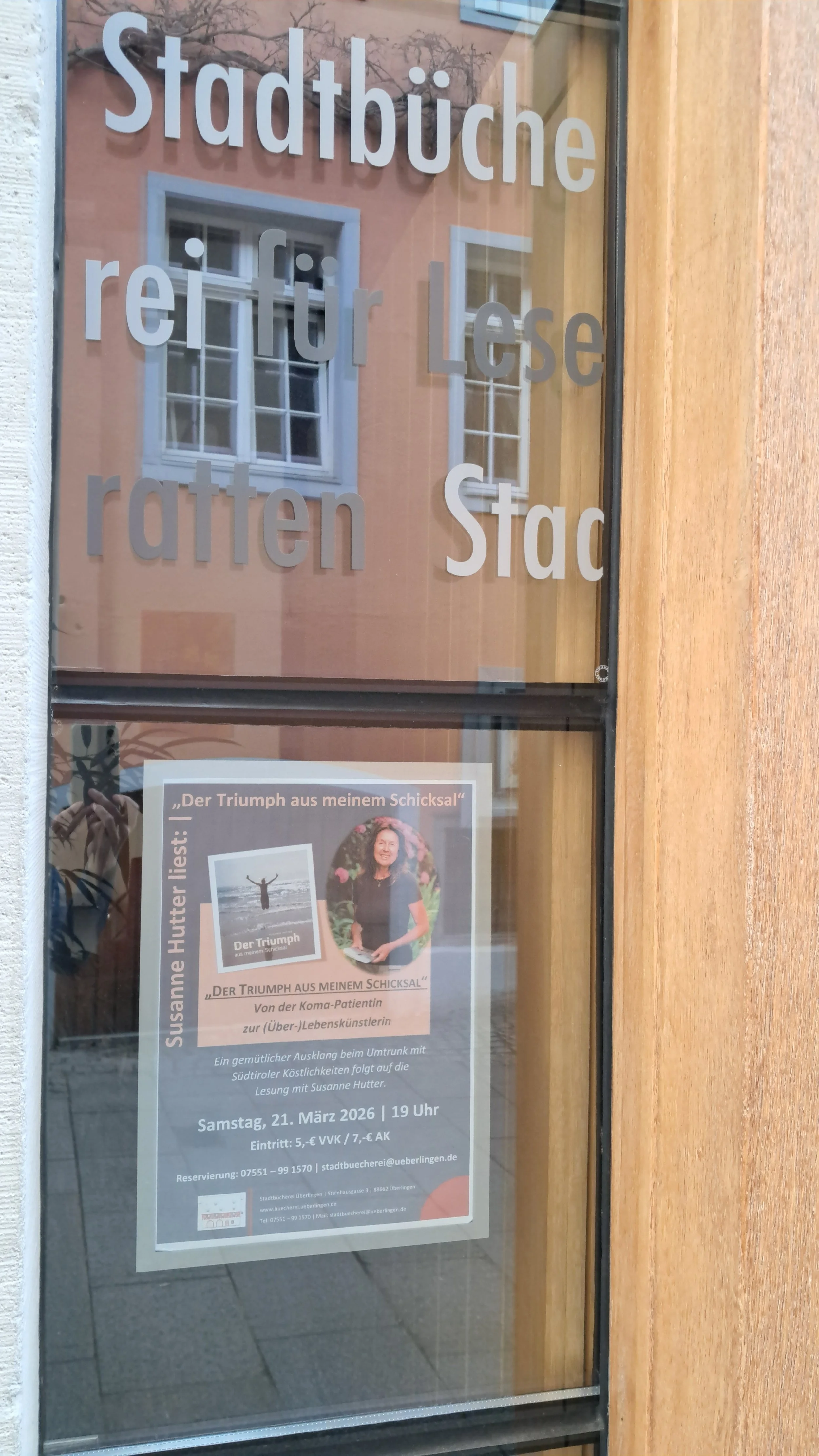 Auch der Abend in der Stadtbücherei Überlingen stand ganz im Zeichen guter und tiefgründiger Gespräche. Wenn Menschen aus freien Stücken heraus beginnen, mir aus ihrem Leben zu erzählen, ihre Schicksale mit mir teilen oder mir ihren Schmerz anvertrauen, dann spüre ich, dass sie meine Botschaft verstanden haben. Meine Veranstaltungen sind keine einseitige Aktivität, wo jemand redet und alle anderen nur zuhören dürfen. Mein Format bietet Raum für eine aktive Interaktion mit meinem Publikum, sie sollen sich nicht als Zuhörer sondern als Teil meiner Veranstaltung wahrnehmen. Der intensive Austausch im Anschluss an die Veranstaltung, die vielen strahlenden Gesichter beim Abschied und nicht zuletzt die zahlreichen, durchwegs positiven Rückmeldungen bestätigen mir immer wieder aufs Neue, dass der persönliche, direkte Kontakt mit meiner Leserschaft durch nichts zu ersetzen ist.